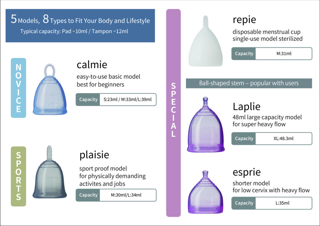 ถ้วยอนามัย feminak ได้พัฒนา 5 รุ่น รวม 8 แบบ ที่เหมาะกับหลากหลายสรีระและไลฟ์สไตล์ของผู้หญิงเอเชีย ช่วยลดความกังวลเรื่องการใส่ถ้วยอนามัย โดยใช้ดีไซน์ที่โค้งมน จับถนัดมือ และอ่อนโยน มอบตัวเลือกที่เหมาะสมทั้งสำหรับผู้เริ่มต้นและผู้มีประสบการณ์
