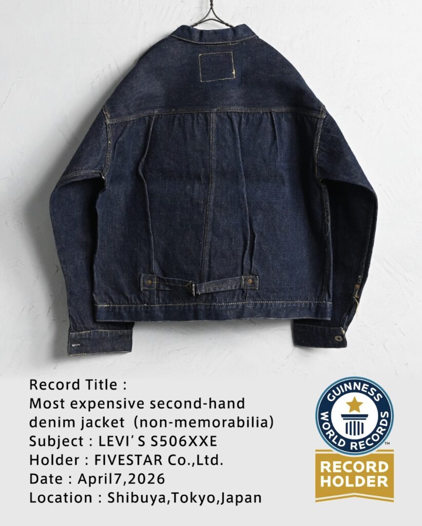 TOKYO, April 7, 2026 — FIVESTAR Co., Ltd., led by CEO Masayuki Sakuma, announces that its historic vintage denim jacket “LEVI’S S506XXE” (acquired for JPY 55,000,000) was officially recognized by Guinness World Records on April 7, 2026.